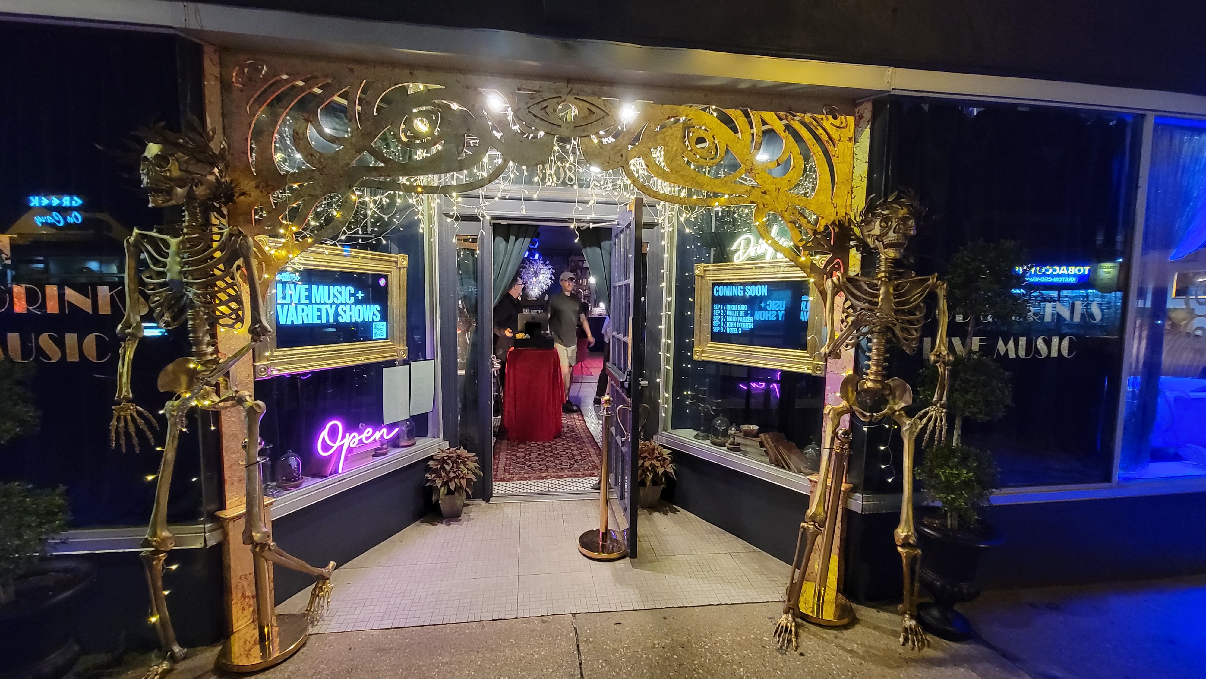 The Révéler also hosts intriguing mystery clue experiences in collaboration with their sister company, Ravenchase Adventures. One such experience, High-Tea + Treachery (please verify the schedule when you read this), caught my attention. Priced at $39, I wasn’t sure what to expect when I invited friends and purchased tickets. However, we were treated to outstanding performances, delectable snacks, mystery, and puzzles that left us both excited and slightly nervous. Our table struggled a bit with each clue, and time flew by, allowing us to complete only half of the adventure before the clock ran out. Nevertheless, deciphering each clue and searching for the next one was a blast, and the tower of small sandwiches and chocolate-covered strawberries didn’t hurt our spirits either.