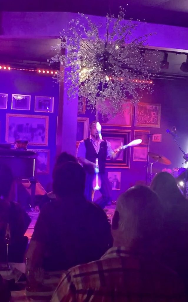 Another unique experience I explored at the Révéler was a Cabaret show. Initially unsure of what to expect, I was pleasantly surprised. Thinking originally it was similar to a burlesque show but later discovering a Cabaret show boasts an array of talents, featuring singers, dancers, jugglers, magicians, and a host of other performers. I learned that the legendary Moulin Rouge was a famous club known for hosting Cabaret shows. The stage may not have been ideal for juggling, but the juggler managed to impress us with his corny jokes and his ability to work with various objects.
